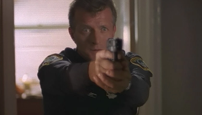 They then received a call about a rabid dog and reported to the location. With nobody answering the door, Murphy and Cable climbed the fence into the backyard, where they found a dog feasting on a human body part. Despite Murphy warning him that they had no warrant, Cable entered the home, fearing the resident had a prisoner.[7]
