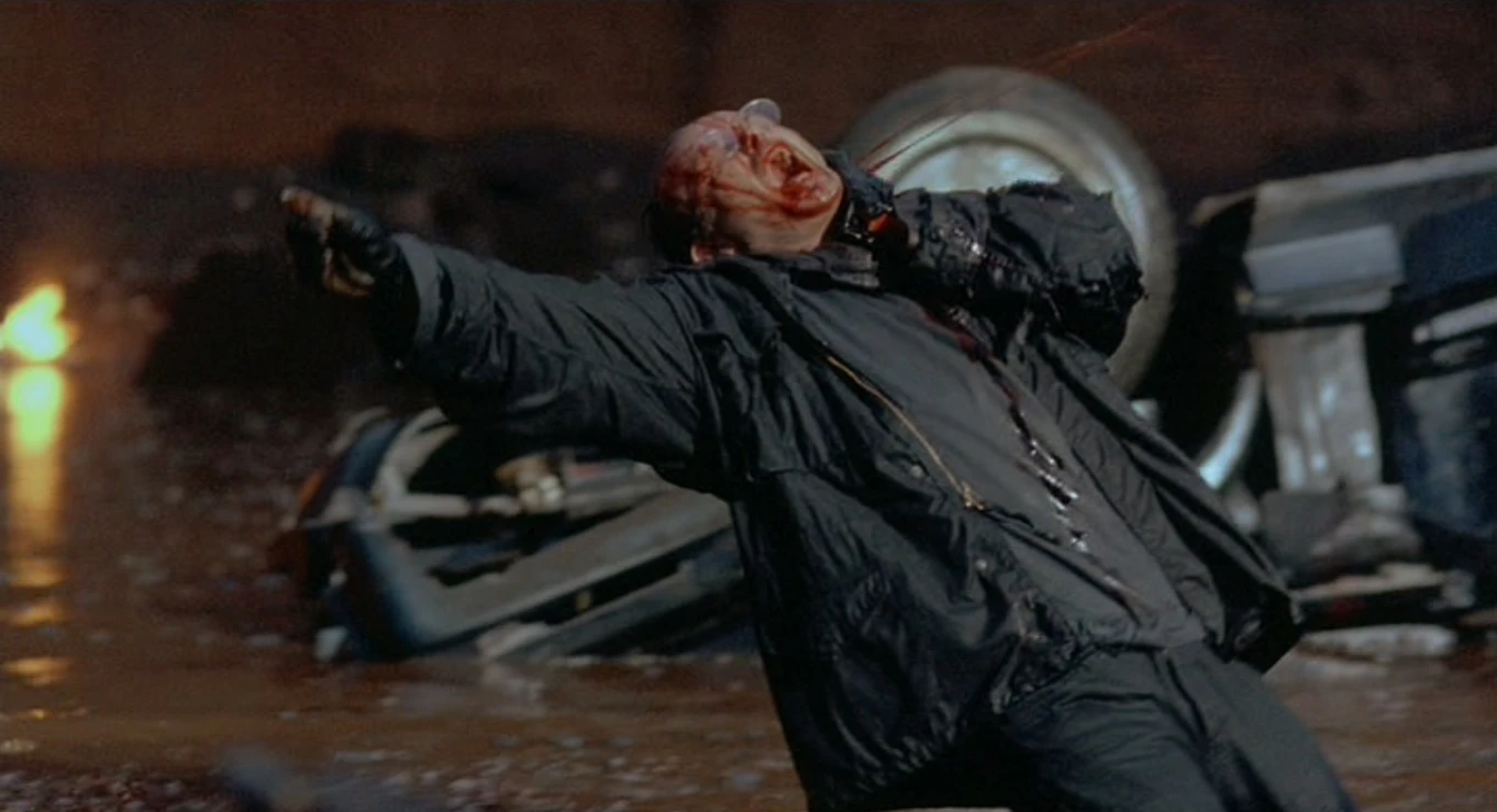 He then left Murphy to the gang, who all opened fire, continuing the horrid mutilation of the officer. After Clarence's gang ran out of ammo, Emil called his boss over, announcing their victim was still alive. The psychopathic Boddicker strode over and produced his weapon of choice. He casually announced "Ok, fun's over," and shot Murphy through the head. He then ordered his men to depart and led them from the steel mill.[2]