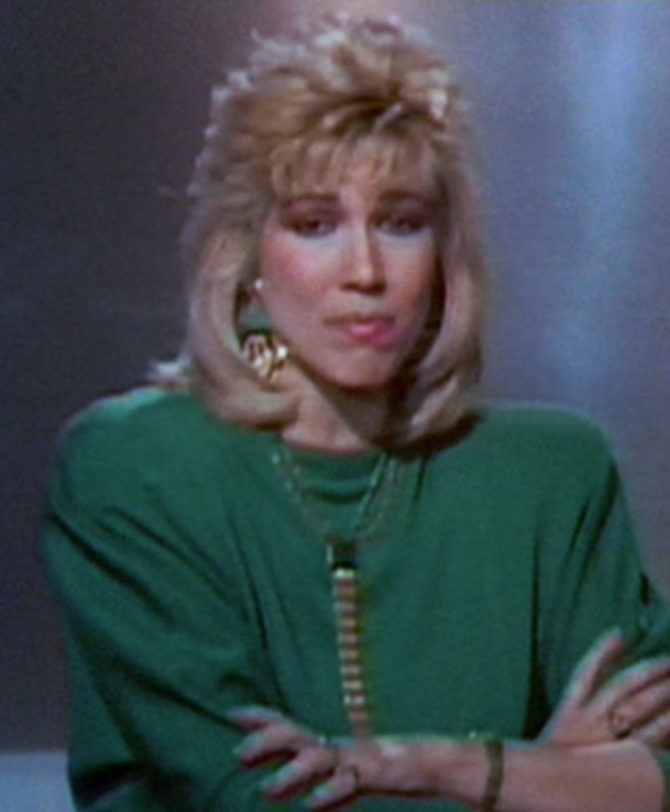 Perkins reported several different news stories during her earlier career on Mediabreak. Among these stories were a power failure at the Star Wars orbiting peace platform, RoboCop's introduction to the public, an incident of an accidental laser cannon misfire from the peace platform, and a potential strike by the Detroit Police.[1]