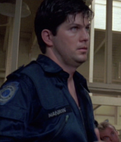 Manson welcomed Alex Murphy to the precinct upon his arrival. He also briefly discussed a strike with Kaplan before Sergeant Warren Reed cut the conversation short when he entered with Cecil to removed murdered Officer Frank Frederickson's belongings.